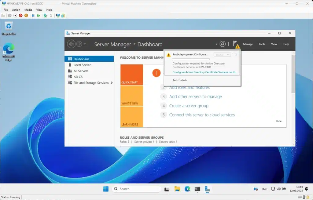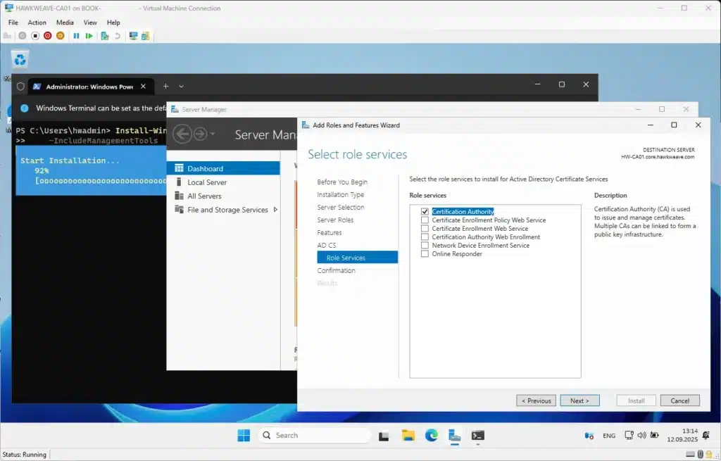 Let’s start with our new Windows Server 2025 CA. I’m going with Server 2025 here since it’s the latest and greatest, and Microsoft has added some nice improvements to the certificate services.
