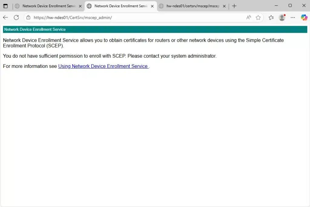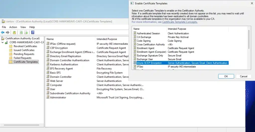 By building this from scratch, you understand the relationships between CAs, NDES, templates, and enrollment processes. This knowledge becomes invaluable when you’re troubleshooting why an Intune-deployed certificate isn’t working with Cisco ISE, or when you need to design certificate-based authentication solutions that work across cloud and on-premises resources.