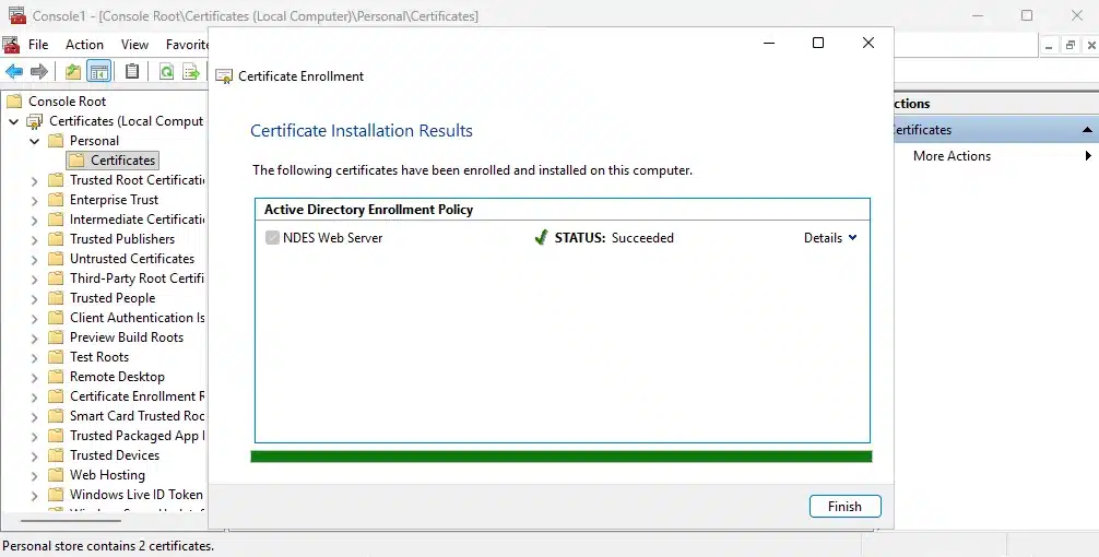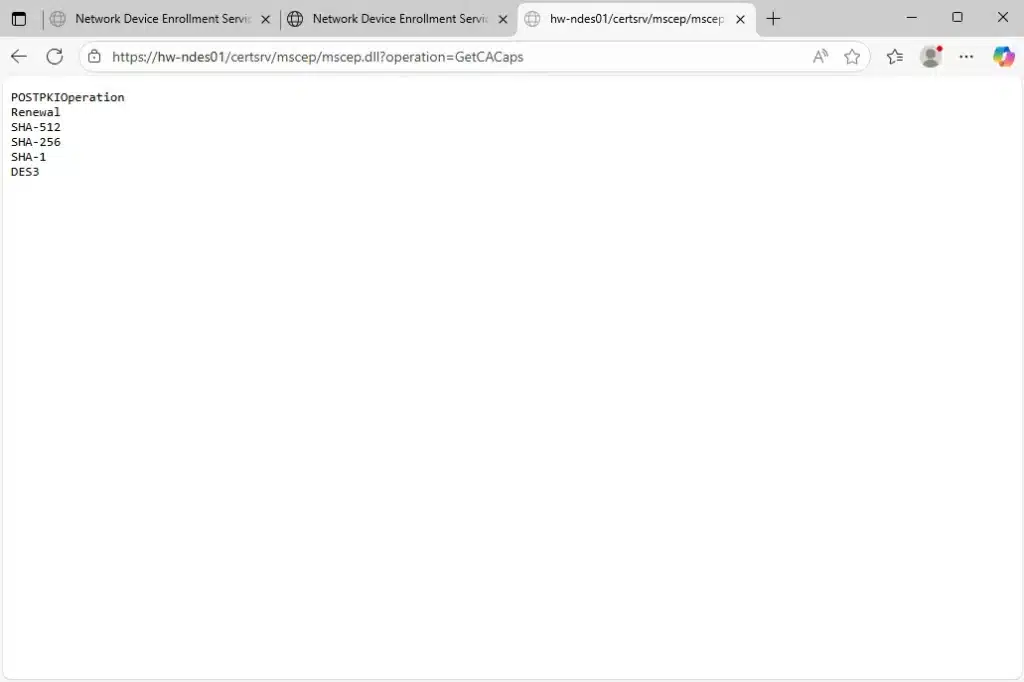 - Find both HW-NDES01-MSCEP-RA certificates