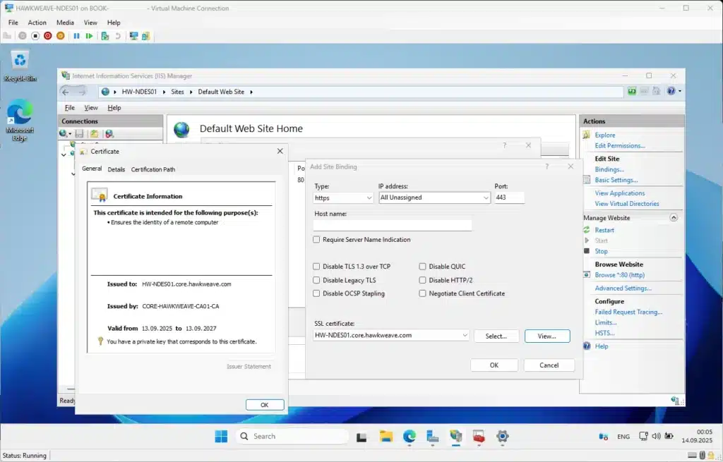 | HAWKWEAVE-CA01 | 10.50.50.20 | Enterprise Root CA | ✅ Complete | Monitor certificate issuance |