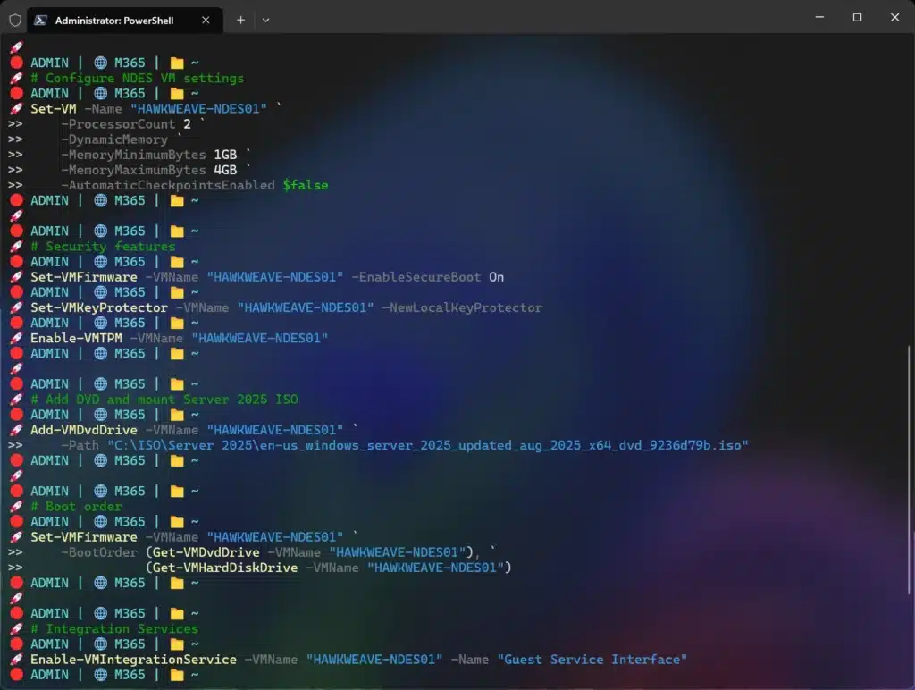 -OUPath "OU=Servers,OU=Hawkweave,DC=core,DC=hawkweave,DC=com" `