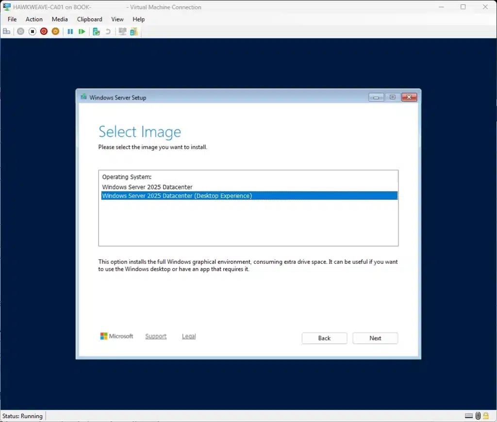 - Edition selection: I went with Datacenter (Desktop Experience) again. For a CA, you definitely want the GUI for certificate management.