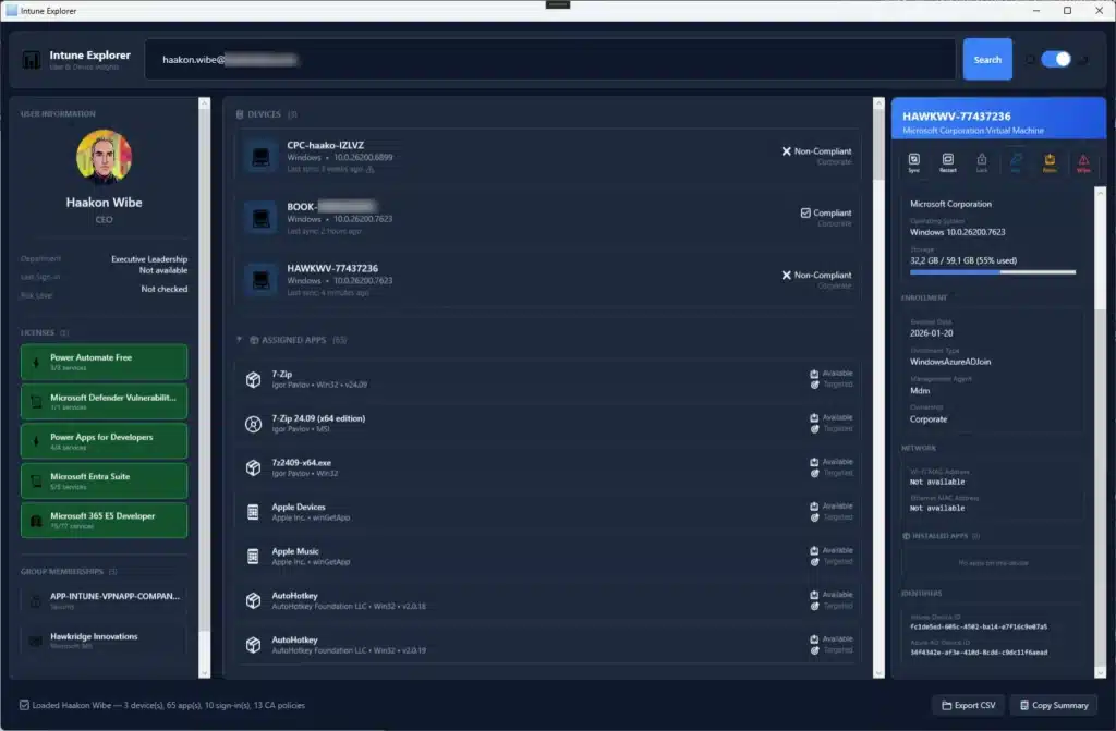 I didn’t need another tool really, but I work with Intune and Microsoft Graph every day ever so often, which meant I felt I had enough knowledge about what was possible and where the limits were. So since I know it pretty well I started wondering “what if I could actually build something”. That again turned into Intune Explorer.