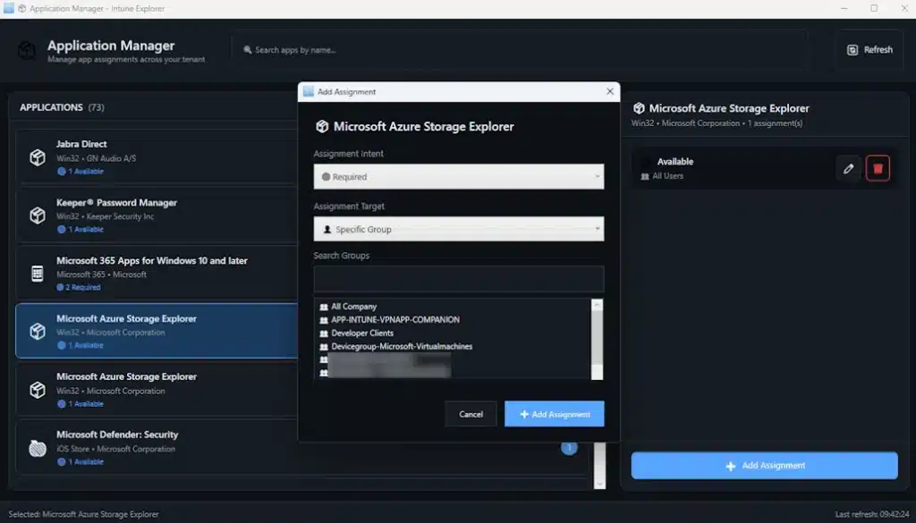 - Application assignment management – device and / or user – with full CRUD operations