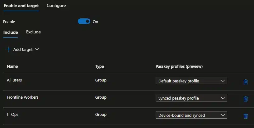 Passkey profiles change that. They introduce group-based configuration with up to three profiles (Microsoft plans to support more later), each with its own rules for: