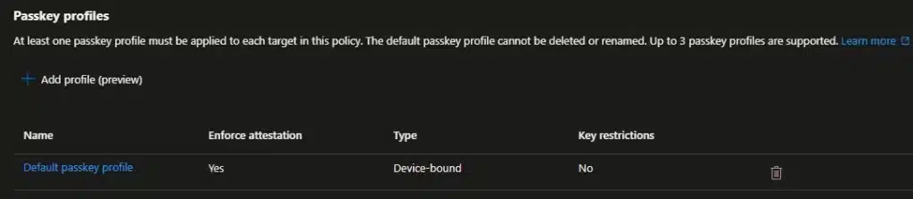 Worth noting: opting in to passkey profiles and enabling passkeys are two separate things. You can opt in, configure your profiles exactly how you want them, and keep the method’s state set to Off (or the registration campaign disabled) until you’re fully ready. That way your configuration is locked in before the automatic migration window — and Microsoft won’t overwrite it with defaults.