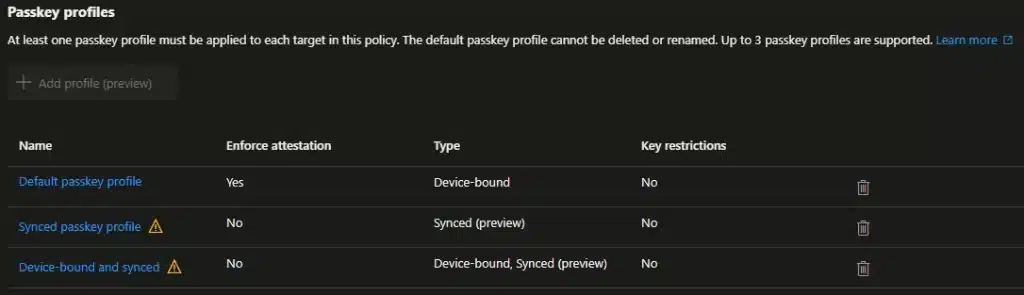 - Synced passkeys don’t support attestation in Entra ID. If you enforce attestation on a profile, synced passkeys are automatically excluded.
